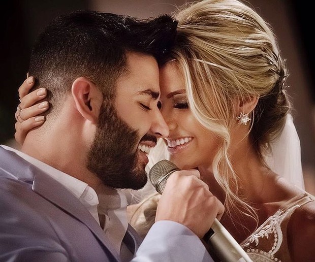 Andressa e Gusttavo estão juntos há cerca de quatro anos, com um rápido término no ano passado. Em dezembro de 2015 eles realizaram a união civil, com reunião íntima na casa do sertanejo, em Goiânia. Em setembro deste ano, aconteceu a cerimônia religiosa, na Paróquia Nossa Senhora da Assunção, na mesma cidade. Finalmente, no dia 3 de outubro foi a vez da festa de arromba, na fazenda de Gusttavo, no município de João Pinheiro, em Minas Gerais. No mesmo mês, quando esteve no SPFW, Andressa revelou ao EGO que já estava tentando engravidar. “Estamos treinando”, brincou.