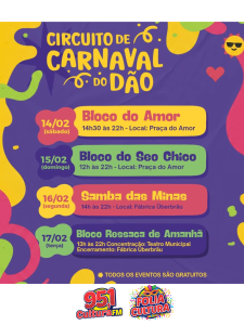 Uberlândia se prepara para viver quatro dias intensos de folia, cultura e ocupação criativa dos espaços públicos com o Circuito de Carnaval do Dão, que acontece entre os dias 14 e 17 de fevereiro, com programação 100% gratuita.