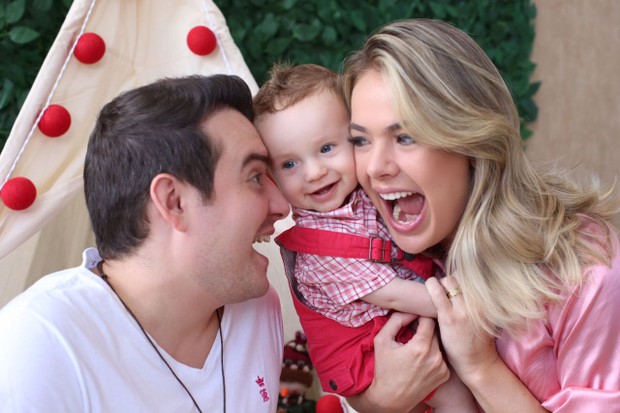 Thaís Pacholek e Belutti comemoram os 8 meses do filho, Luis Miguel, com um ensaio fotográfico fofíssimo. Em algumas fotos, a atriz e o cantor sertanejo posaram ao lado de Luis Miguel, que apareceu todo sorridente entre os papais.